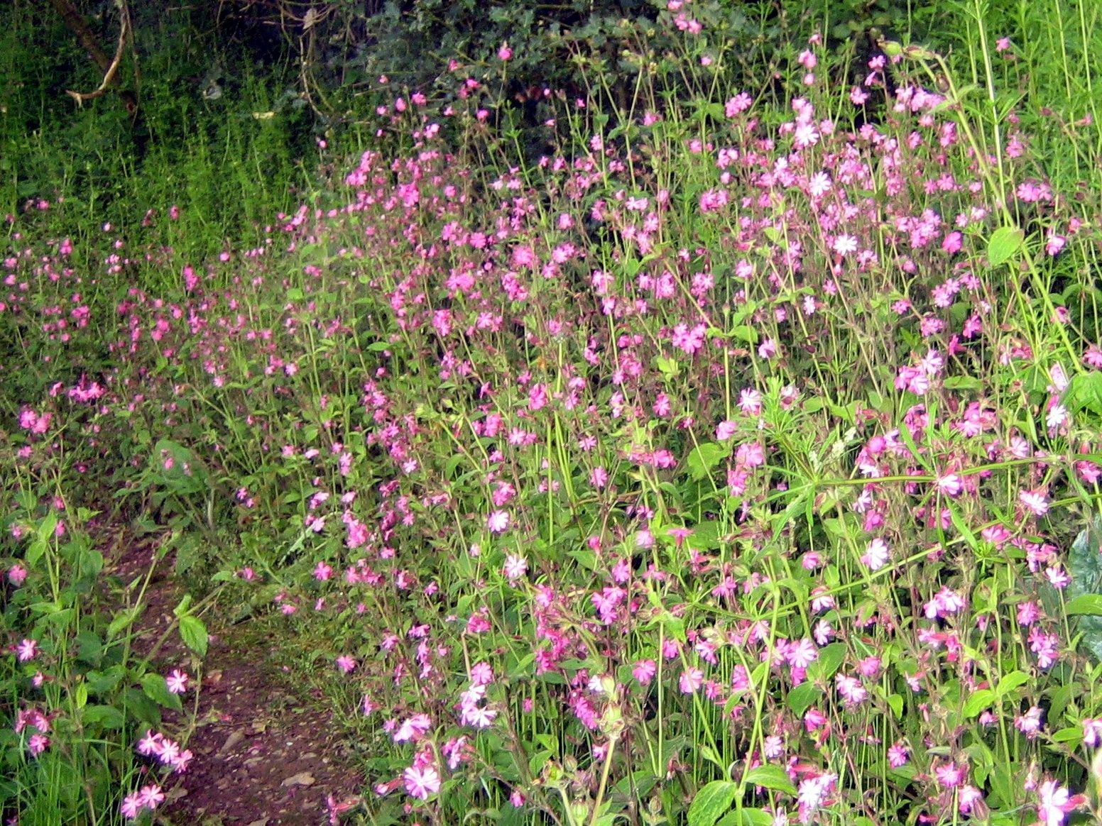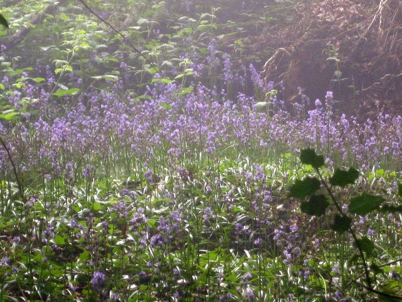 Quelques centaines de mètres plus loin, on passe au bleu des jacinthes sauvages et au rouge des compagnons rouges, tous en fleurs.