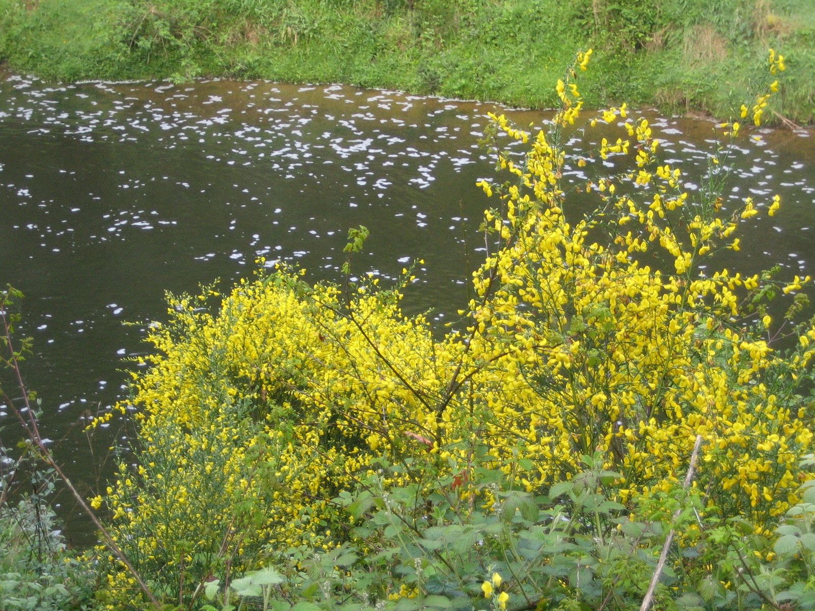Après le blanc de l’ail des ours, le bleu des jacinthes et le rouge des compagnons, voici le jaune des genêts, tandis que le déversoir du barrage déverse son trop-plein.