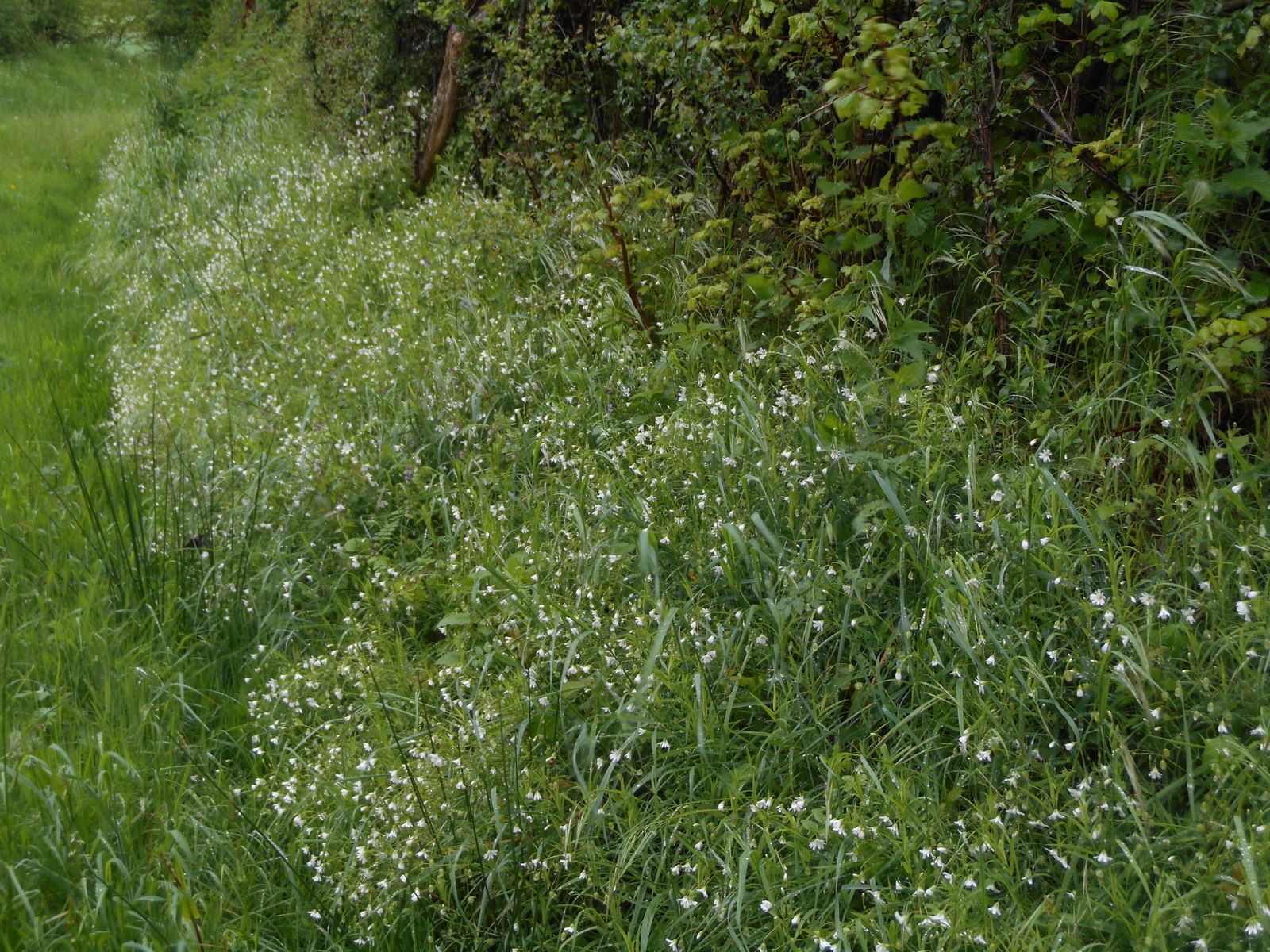 Pour le retour, nous nous éloignons un peu du lac pour trouver une mer de blé en herbe, des stellaires garnissant les bas-côtés. A propos, nous avions oublié de vous le dire : la pluie s’est arrêtée !