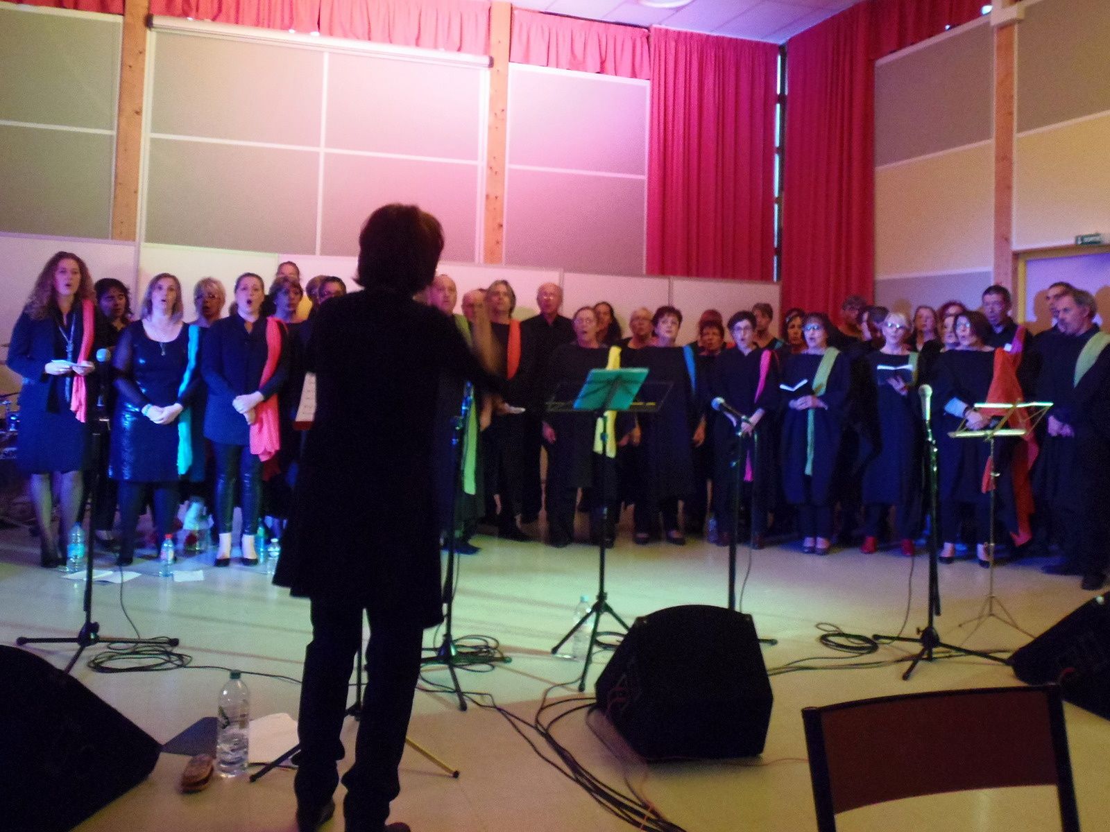 Ils étaient une quarantaine, tous de noir vêtus, une écharpe colorée rehaussant le vêtement, les choristes du chœur Gospel en Cœur, de Montluçon, étaient au pôle de l’Etang Merlin ce vendredi 8 mai 2015. C’est devant une salle quasi comble qu’ils se sont produits.