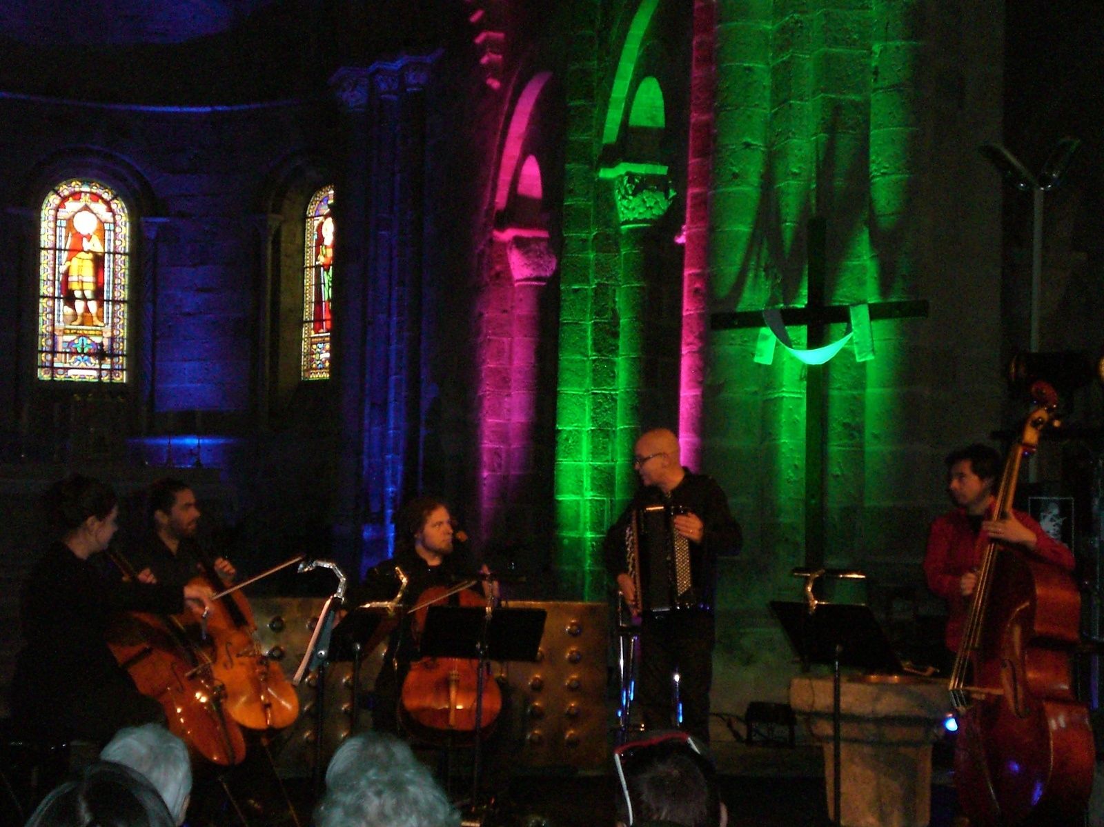 Le choix de l’interprétation, les cordes accompagnant l’accordéon, la sono parfaitement réglée mais aussi l’acoustique si particulière de notre belle église donnait ampleur et magie à la musique parfois un peu sèche de PIAZZOLA. Le jeu de chaque instrument était parfaitement lisible.