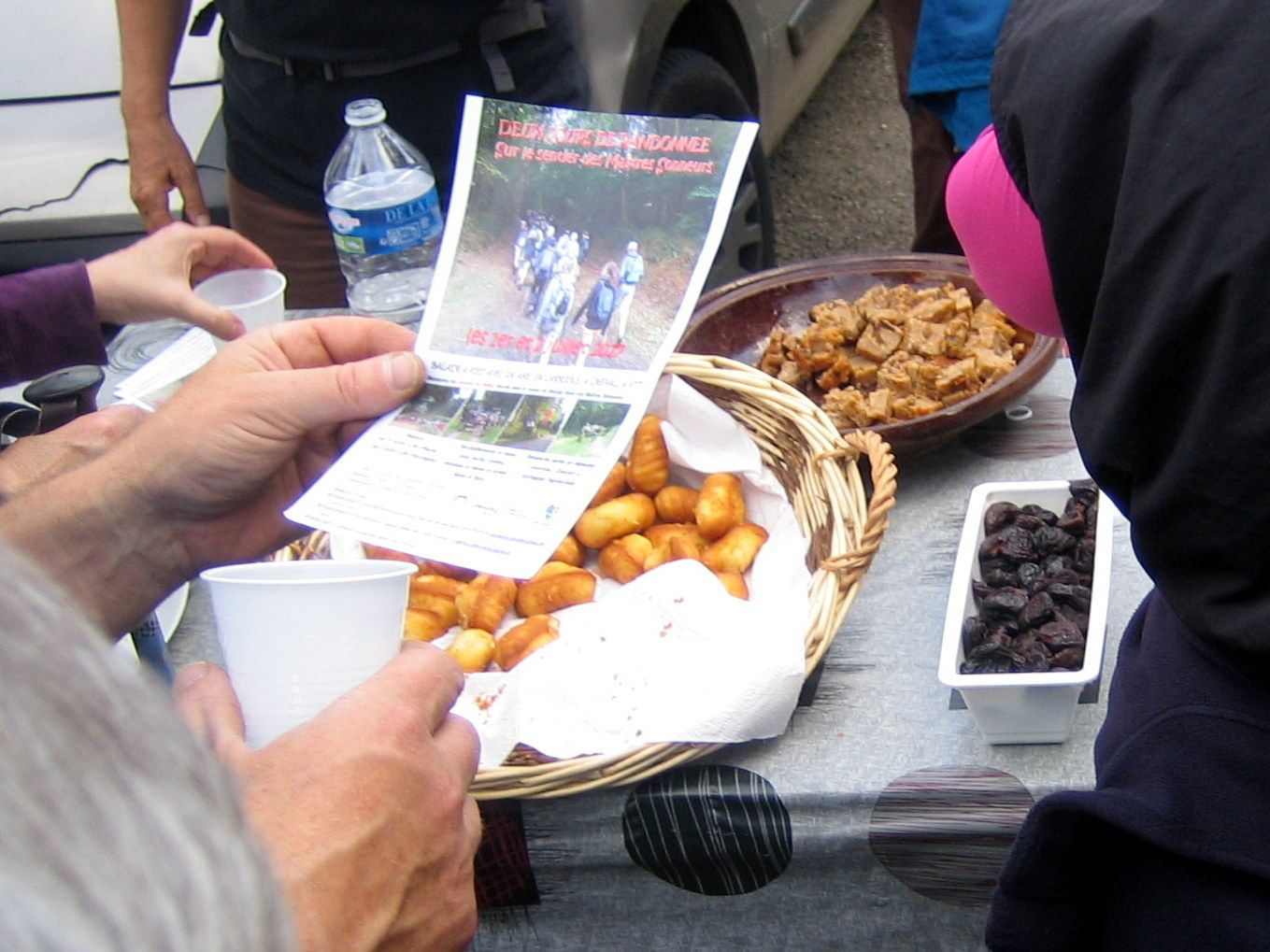 Compte –tenu de l’heure, le ravitaillement est le bienvenu. Au menu (entre autre) : de la fromentée, vous ne connaissez pas ? C’est une spécialité des Thiaulins, un plat très ancien. La recette : du froment (blé) grossièrement écrasé, cuit dans du lait avec des œufs pour lier le tout ; et quand vous êtes Thiaulins, vous améliorez la recette avec du sucre, des raisins secs, de l’alcool … Evidemment ça ne peut être que délicieux ! Même le ravitaillement se fait en musique.