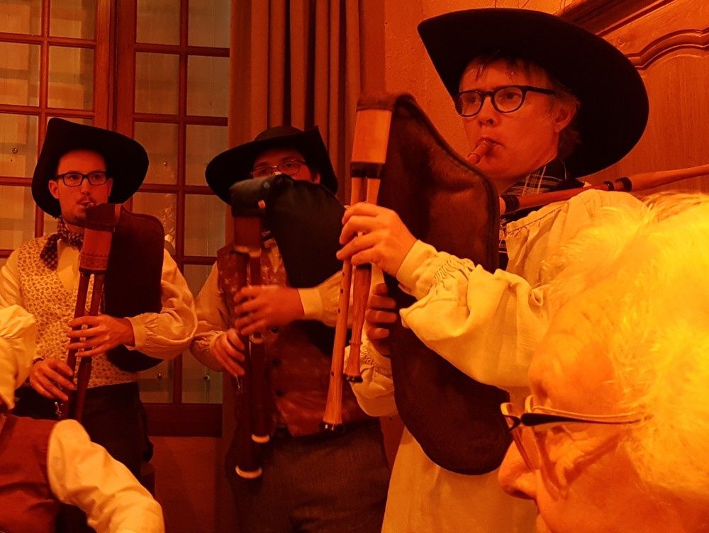 A l’entrée du château, est évoquée l’exposition sur « Les âges de la vie en Bas-Berry » actuellement en sommeil, elle reprendra au printemps. Dans la première salle sobrement décorée avec la grande cheminée nous attendent les chants de Noël, nos « cantiques » berrichons. C’est toujours un grand plaisir d’écouter ces chants populaires, principalement accompagnés par la cornemuse, la vielle et l’harmonium.