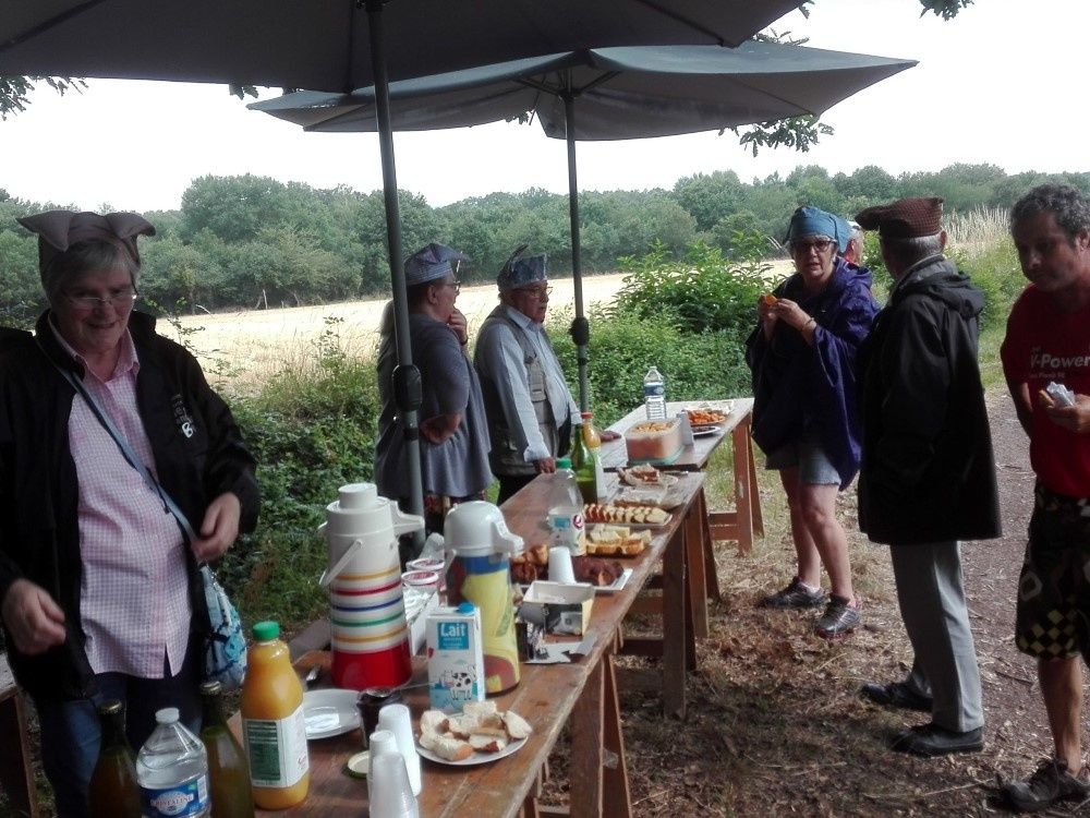 Cet arrêt se situe en lisière de forêt, sur un breuil nous explique Mic. « Au début du 19ème siècle, face au manque de terres cultivées, les paysans défrichent landes et bois, creusant des fossés, formant des haies pour créer notre bocage actuel ; le fossé et la haie en limite de défrichement s’appelait le breuil. C’est là où nous sommes » ; c’était notre minute culturelle !