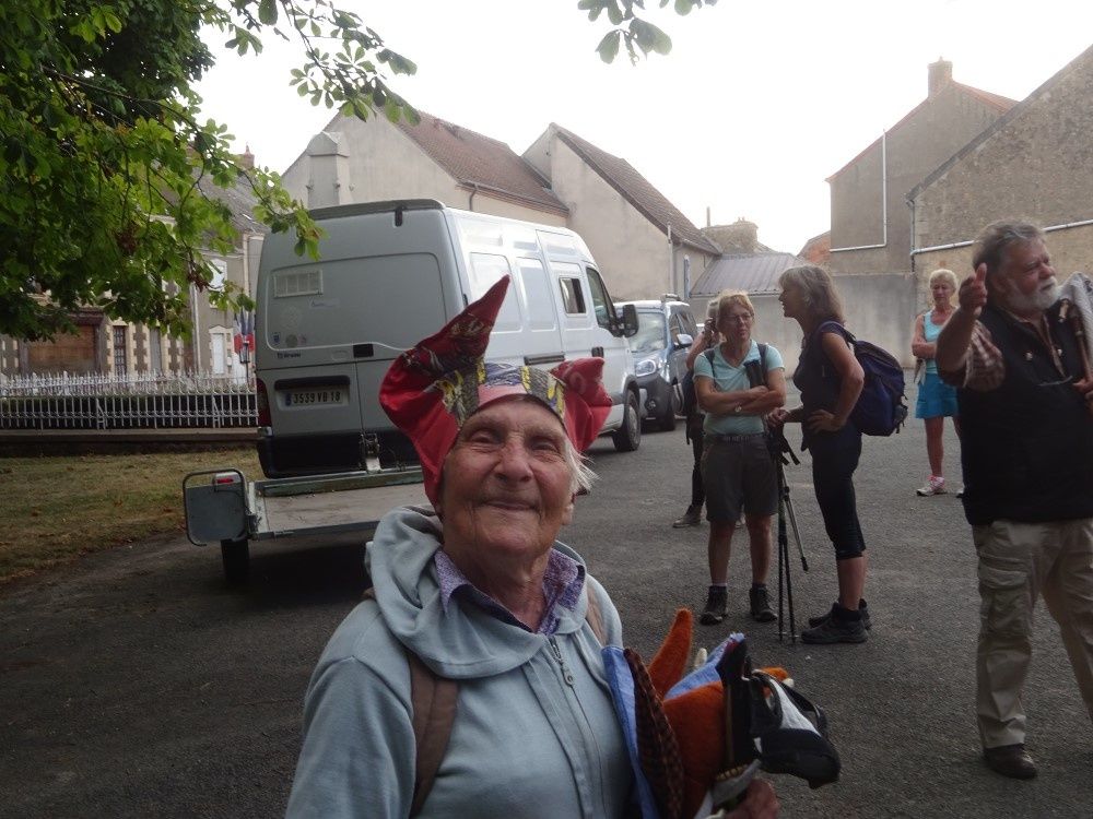 Et c’est au 2ème ravitaillement que la randonnée rencontra la poste ; toutes les deux utilisent les chemins, toutes les deux utilisent toute la largeur du chemin, que croyez-vous qu’il se passa ? On partagea la bonne humeur !